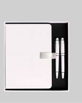 Premium Business Gift Set with White Notebook & 2 Elegant Pens – A5 Size| Code: CON-Med-Col-04