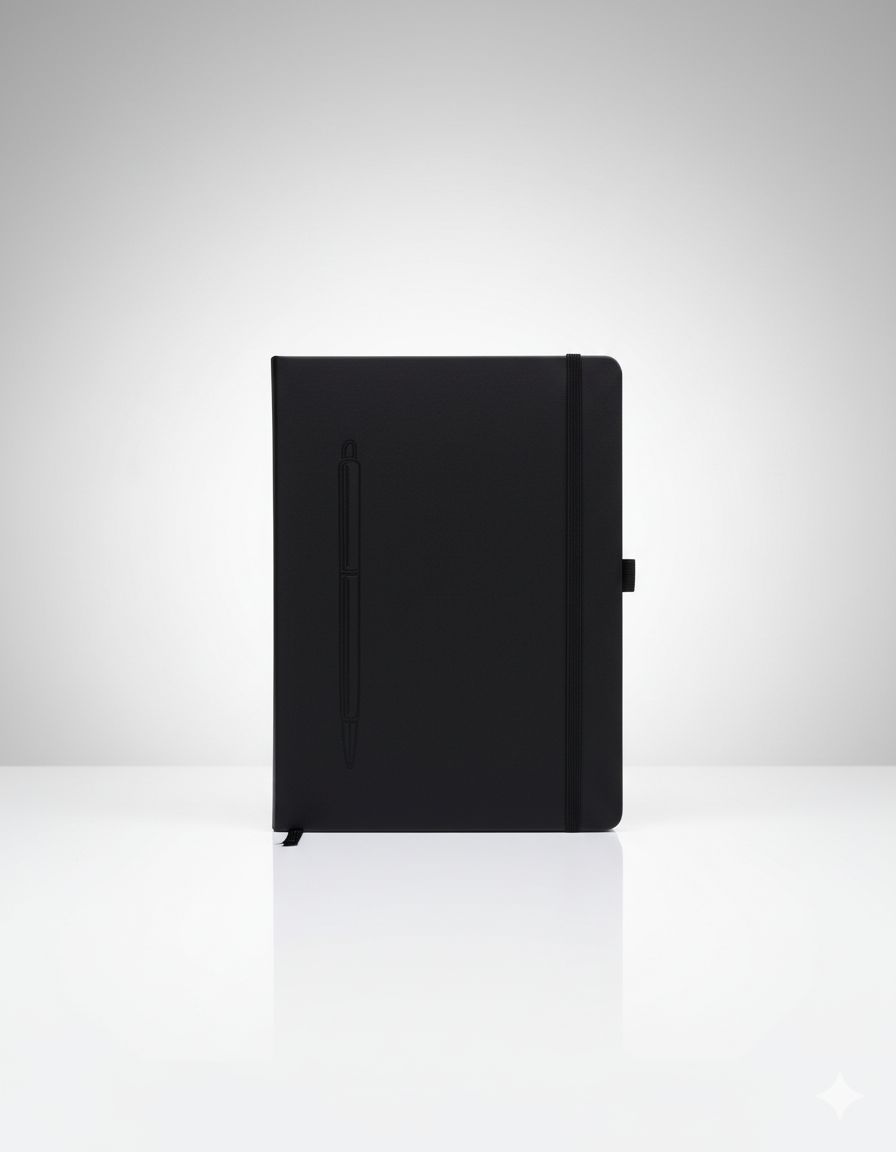 Premium Black Notebook with Leather Cover – Elegant Design for Work, Study and Daily Use |Code : CON-Nb17-23