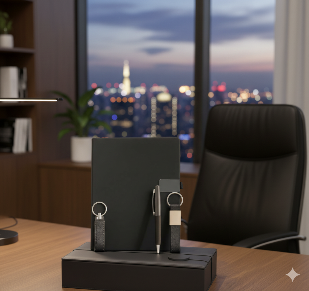 Black Business Gift Set with Notebook, Pen & 2 Keychains – Elegant Corporate Collection|Code: CON-Buss-Std-209