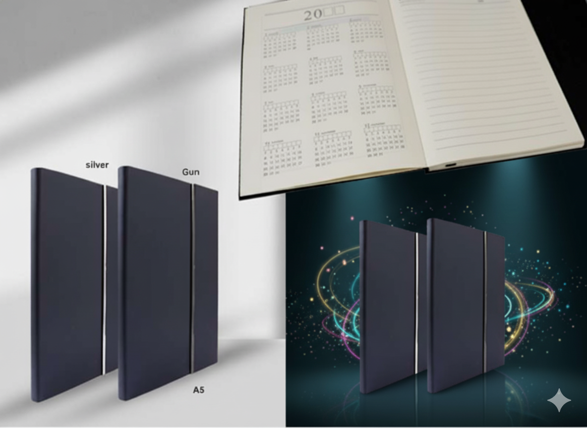 Premium A5 Notebook with Metallic Accent – Elegant Design in Silver and Gun Colors |Code : CON-Nb-17-16