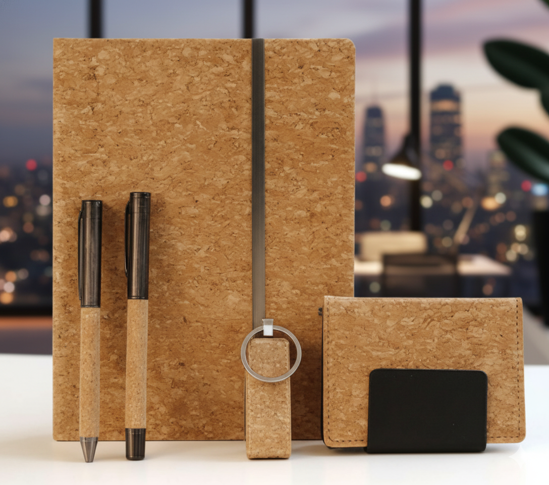 Eco-Friendly Cork Business Gift Set with 2 Pens, Notebook & Keychain – Natural Cork Design| Code: CON-Business-Normal-Cork-1