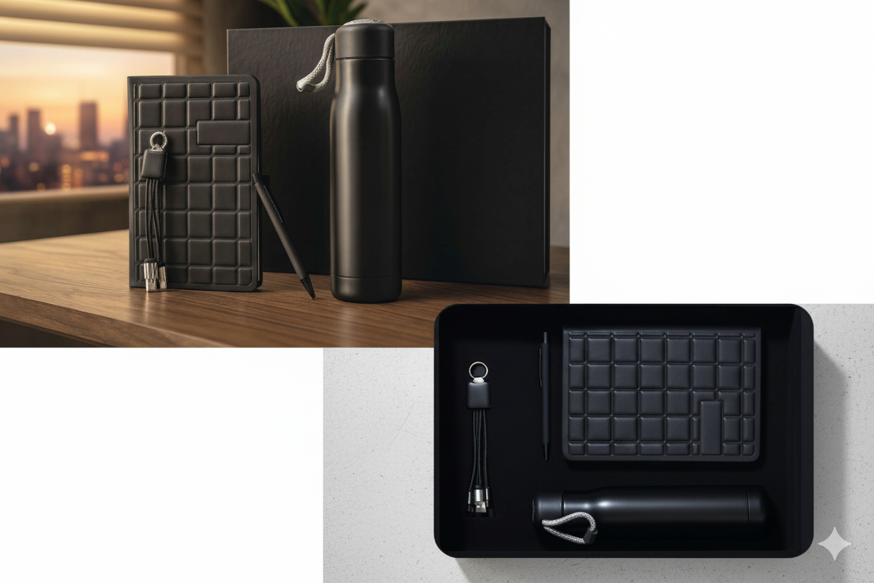 Executive Business Gift Set – Notebook, 3-in-1 Charging Cable, Metal Pen & Thermal Bottle – Premium Large Box |Code: CON-BS-L-Mg-101