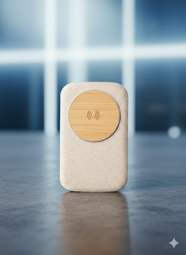 This 5W wireless charger is made from a blend of wheat straw and bamboo, offering an environmentally friendly alternative to conventional chargers. Its clean and natural look fits perfectly into modern desks and workspaces.