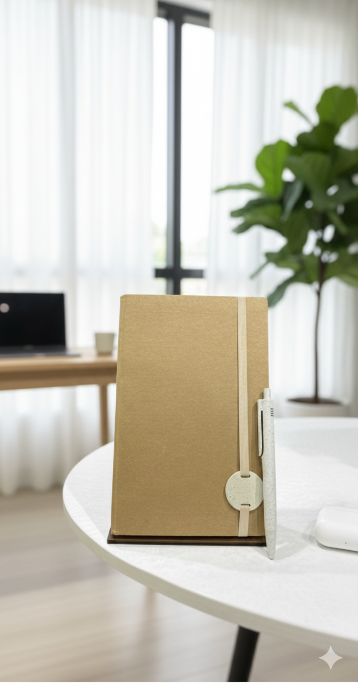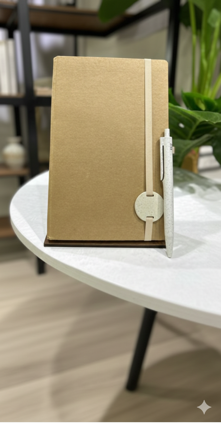 This Eco Kraft Notebook with Pen is designed for those who appreciate simplicity, functionality, and sustainability. Featuring a durable kraft paper cover with a clean, modern look, it offers a professional appearance suitable for any workspace.