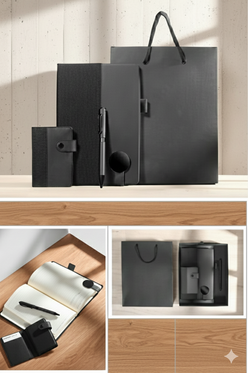 The set also includes a practical card holder to organize your business or personal cards, and a stylish black gift bag, making it ready for gifting. Perfect for professionals, students, colleagues, or corporate giveaways.