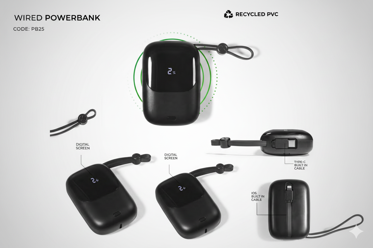 The PB625 Smart Cable Power Bank is engineered for maximum convenience and reliable performance. Featuring an integrated charging cable, it eliminates the need to carry additional wires, making it a practical and efficient solution for everyday use. Its compact, portable size combined with a premium black rubber finish ensures durability, comfort, and a modern professional look—perfect for charging your phone effortlessly while on the go.