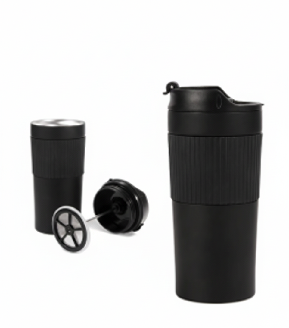 Experience fresh coffee anytime with the STEAMI Coffee Press Mug. Featuring a built-in French press plunger, this 380ml insulated mug lets you brew your perfect cup directly inside the cup. Just add coffee and hot water, press, and enjoy.