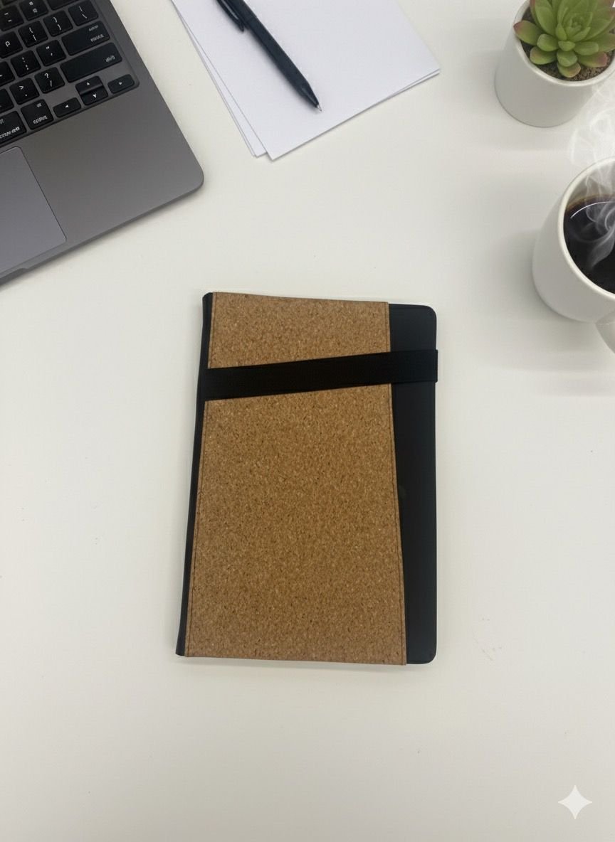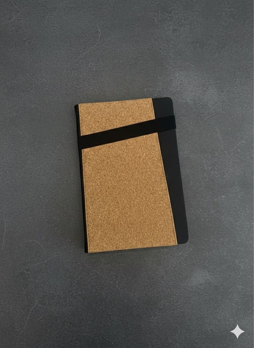 Cork & PU Leather A5 Notebook – Eco-Friendly Design with Elastic Closure & Pen Loop | Natural & Modern Journal for Work, Study & Daily Notes