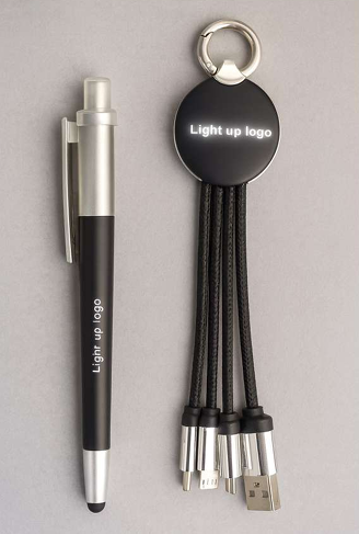 Stylish Gift Set: Includes a light-up logo pen and a 3-in-1 charging cable, perfect for modern professionals.