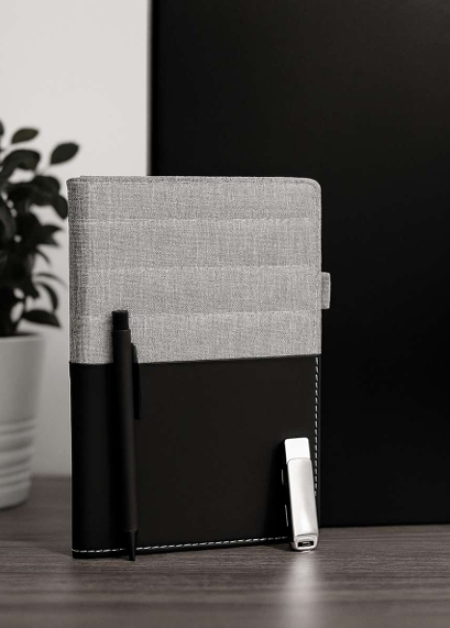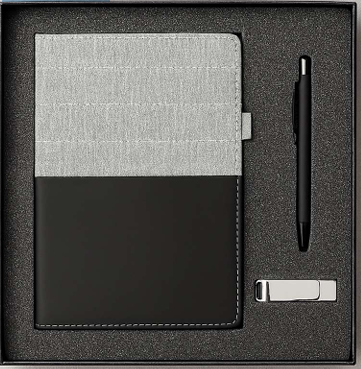 Luxury Black Leather Gift Set – Notebook + Metal Pen + USB Flash Drive | Code: CON-Buss-Med-204