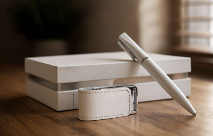 Luxury White Gift Set – Elegant Metal Pen & USB Flash Drive|Code: CON-Buss-White-01