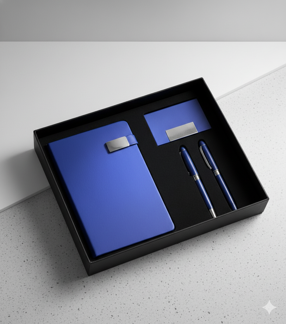 Premium Navy Blue Business Gift Set with Notebook & Pen – A5 Size| Code:CON-Set-100-Blue