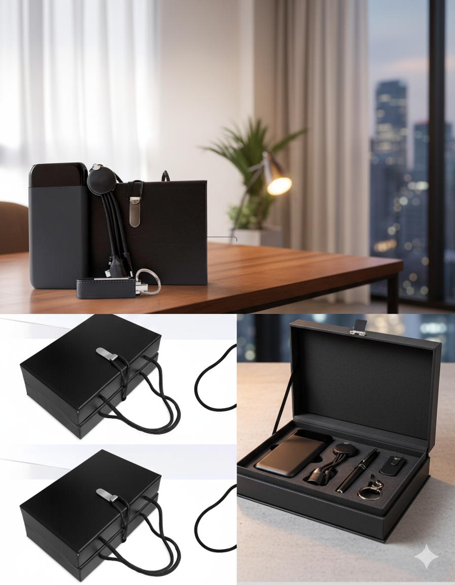 Business Gift Set with Power Bank, 3-in-1 Charging Cable, Pen & Keychain – Premium Corporate Collection |Code: CON- Buss-Bag-Power-01