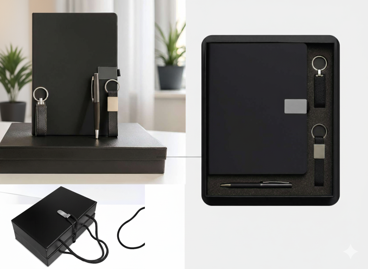 Black Business Gift Set with Notebook, Pen & 2 Keychains – Elegant Corporate Collection|Code: CON-Buss-Std-209