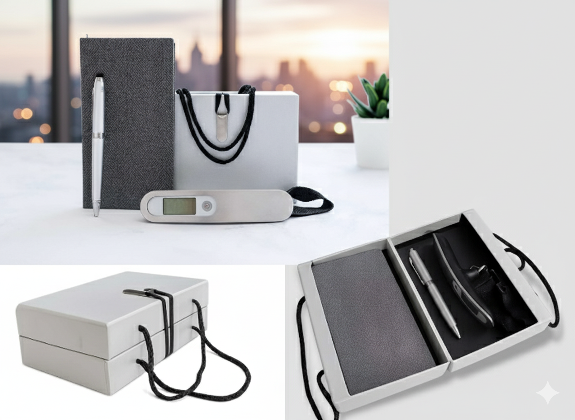 Business Gift Set with Luggage Scale, Notebook & Pen – Smart Travel & Office Kit| Code: CON-Buss-Bag-Silv-01