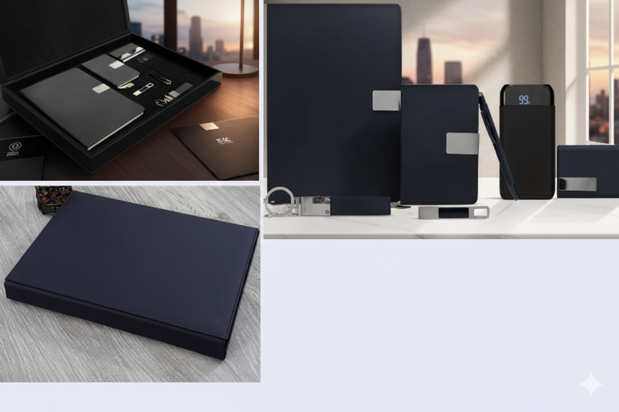 Includes 2 premium notebooks (A5 & A6), power bank (10000 mAh), metal pen, keychain, and card holder