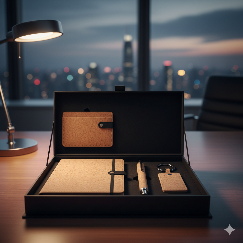 Presented in a premium 4 cm business gift box with a natural cork finish