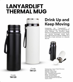LANYARDLIFT Thermal Mug – 500ml Stainless Steel Insulated Bottle with Integrated Lanyard